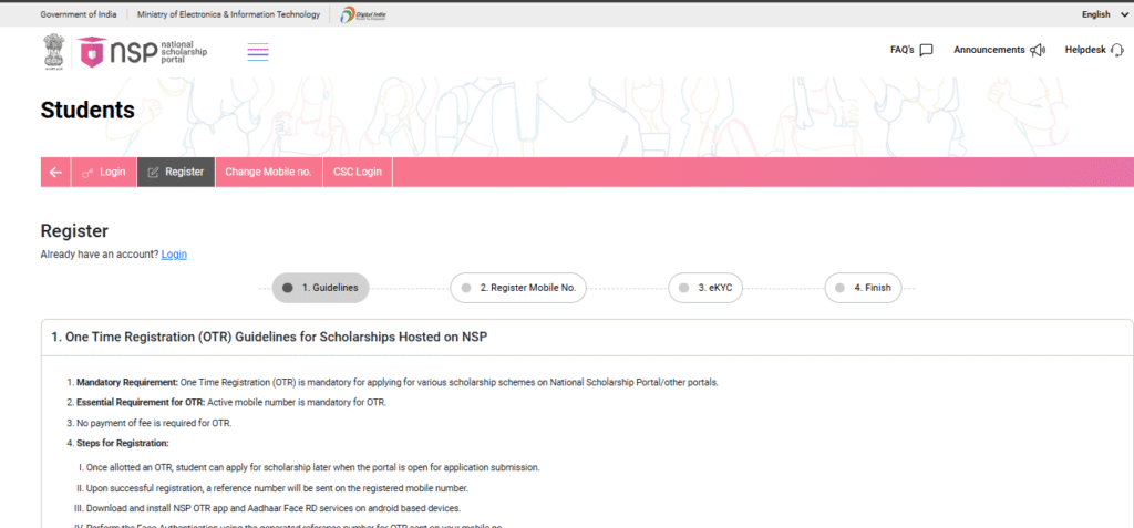 • STEP 2: Once the students reach the homepage of the official website, they must locate and click on the option called “register”.