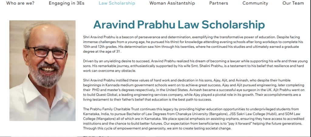 The Prabhu Family Charitable Trust has introduced a new Scholarship Aravind Prabhu Law Scholarship 2025 for those students who want to secure their future in the field of Law. Over the years, the Prabhu Family Charitable Trust continuously his legacy by providing higher education opportunities to underprivileged students from Karnataka India to pursue bachelor of law degrees from Chanakya University Bangalore JSS Sakri Law College Hubli and SDM Law College Mangalore all of which are in Karnataka. Under this scholarship, Prabhu Family Charitable Trust always encourages students to pursue Bachelor of Laws degrees from universities in Karnataka by providing scholarships to them so that they can easily complete their degrees without any financial difficulties. Are you residents of Karnataka and want to apply in this scholarship so go the official website and apply now we will provide you full information regarding this article so read it till end.