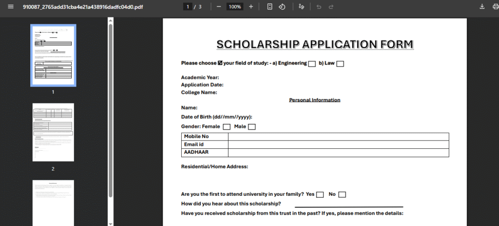 - Applicant must be a student enrolled or enrolling in any year of the LLB degree course at the selected Law institute in Karnataka.