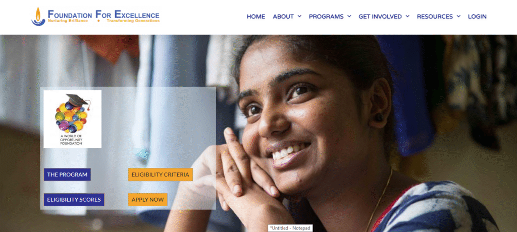 • STEP 1: All the students who want to avail the benefits of the Foundation for Excellence AWOO Scholarship Program are requested to visit the official website.