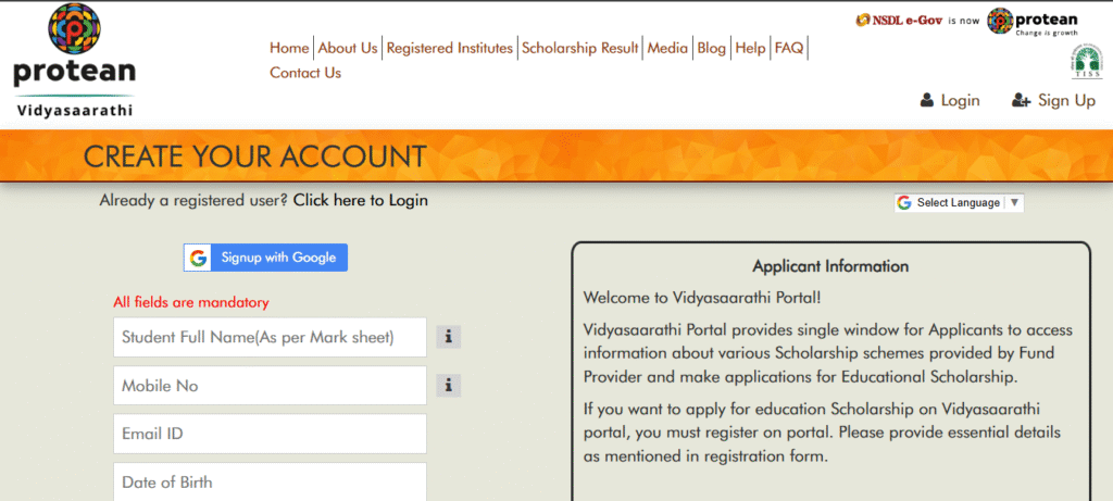 - Go to Vidyasaarathi website.