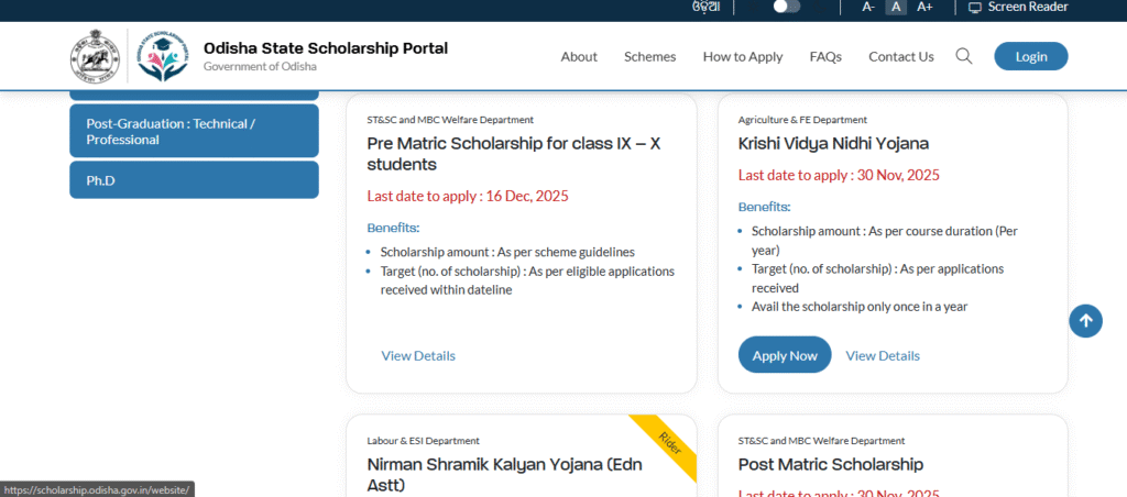 - Go to the official scholarship website: scholarship.odisha.gov.in.