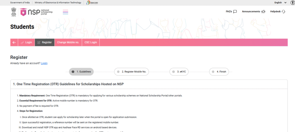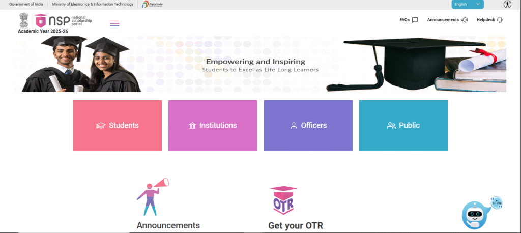 - The candidates will first have to visit the National Scholarship Portal Website.