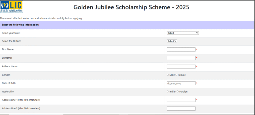 How to apply for the LIC Golden Jubilee Scholarship Scheme 2025?