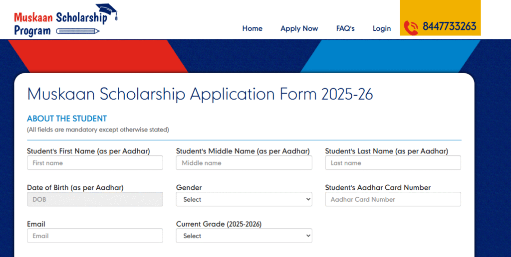 Muskaan Scholarship Program Application Procedure 2025