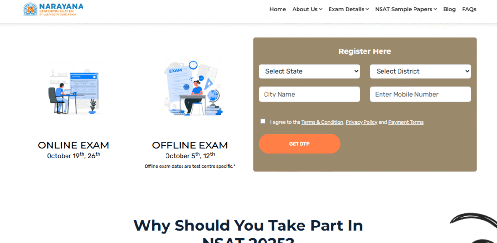 The Narayana Scholastic Aptitude Test (NSAT) 2025 has introduced by the Narayana Coaching Centre to provide financial aid and scholarships to meritorious and talented students. The NSAT is working from last eighteen year for the well-being of students by giving them scholarship to continue their education without facing any difficulties regarding money. This exam for nationwide talented students for class 11th, passing the exam students will get scholarship. Narayana have more than 45 years of experience in coaching of engineering and medical entrance exam, Narayana gives you the best study tools, material, resources and best knowledgeable faculty to succeed academically. For further detail about Narayana Scholastic Aptitude Test (NSAT) keep reading this article we provide you all information.