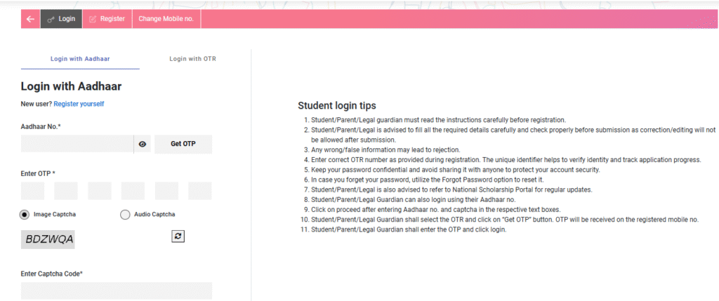 - The student must have a valid Aadhaar number linked with a mobile number.