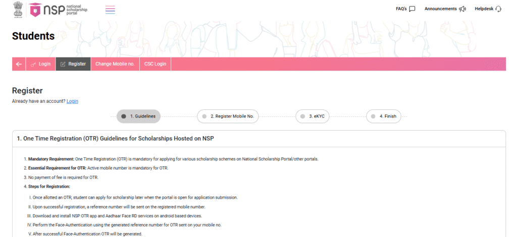 STEP 2: Once the students reach the homepage of the official website, they must locate and click on the option called “register”.