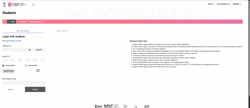 STEP 4: A new page will appear on your desktop screen. The students must enter their mobile number and OTP that they have received on the registered mobile number.