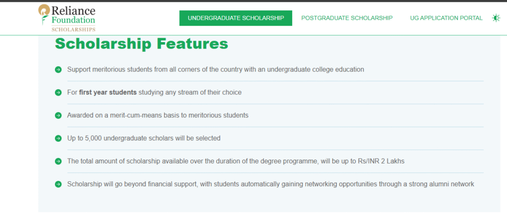 Key Highlights of Reliance Undergraduate Scholarship 2025
