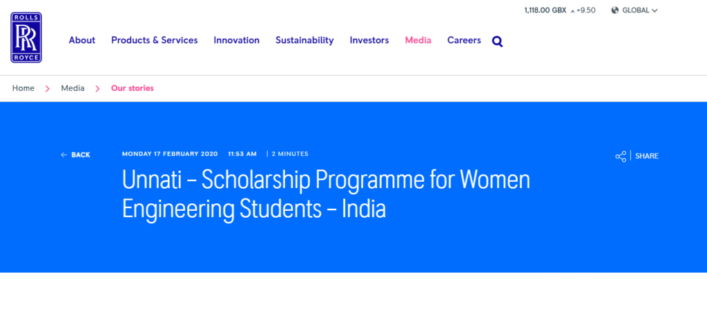 | Name of the scholarship | Rolls Royce Wings4Her Scholarship |