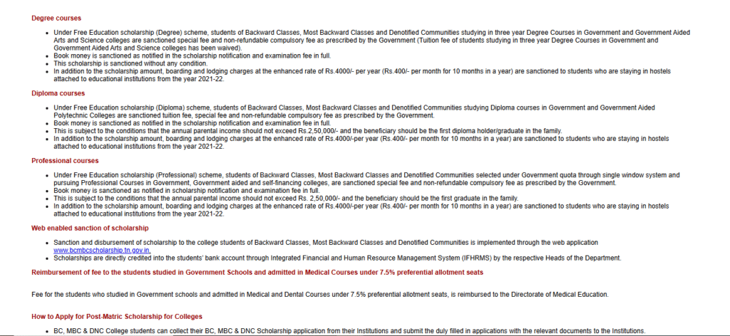 | Name of the Scholarship | Tamil Nadu Muslim Students Scholarship |