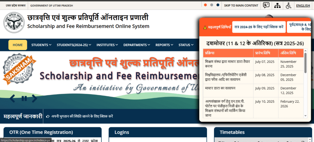Time table of UP Scholarship