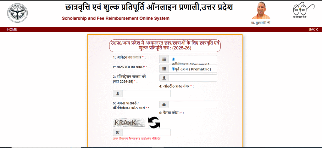 - To submit the renewal application, you must have a registration number and password of the Scholarship and Fee Reimbursement Online System Uttar Pradesh portal