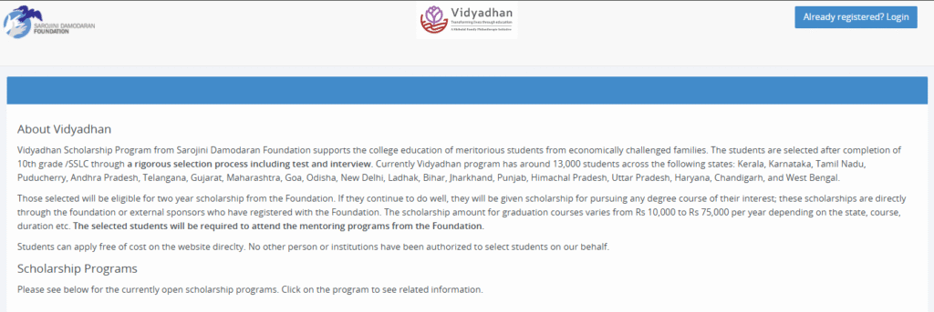 Applicant should check the official Vidyadhan site regularly  for updates.